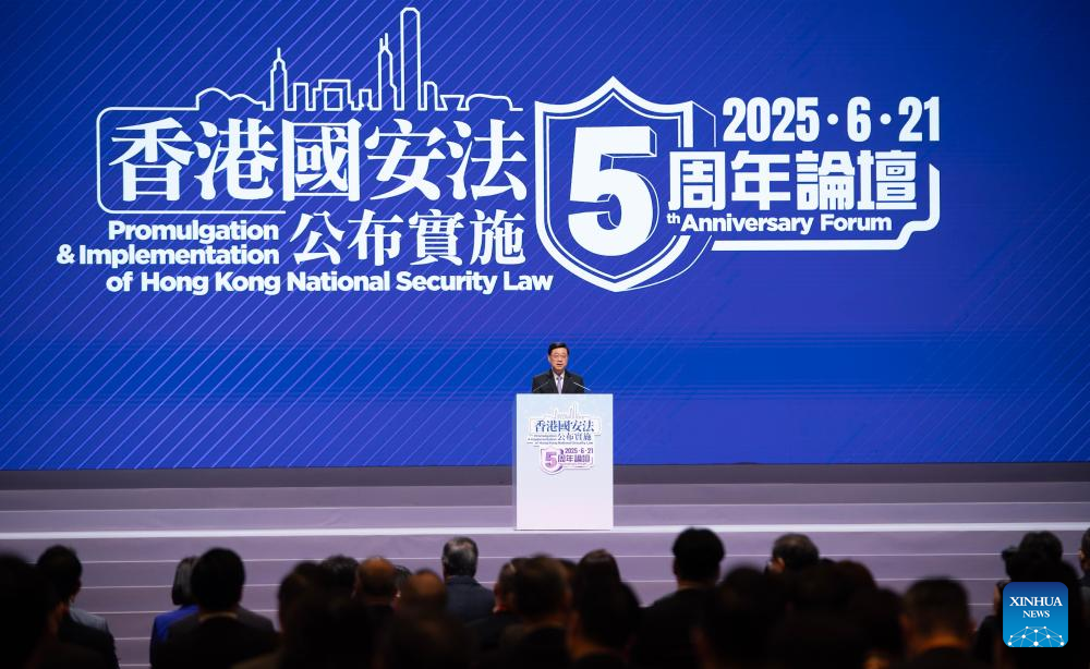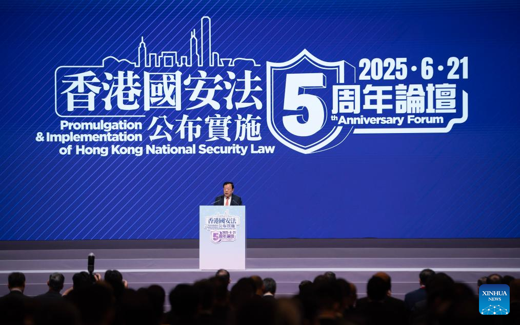 HONG KONG, June 21 (Xinhua) -- The Hong Kong Special Administrative Region (HKSAR) government on Saturday held a forum to mark the 5th anniversary of the promulgation and implementation of the national security law in Hong Kong.