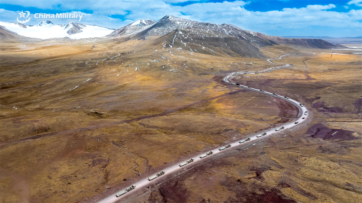 Military vehicles attached to a transportation brigade under the Chinese PLA Army are en route to a designated area during a long-distance maneuver training exercise on June 11, 2025. (eng.chinamil.com.cn/Photo by Lu Qianjin)