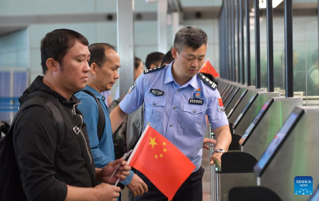 Police officers of the Beijing General Station of Exit and Entry Frontier Inspection assist Chinese nationals with their entry procedures at Beijing Capital International Airport, in Beijing, capital of China, June 20, 2025. The first charter flight carrying 330 Chinese nationals evacuated from Iran arrived at Beijing Capital International Airport from Ashgabat, the capital of Turkmenistan, on Friday. (Photo by Zu Guobao/Xinhua)