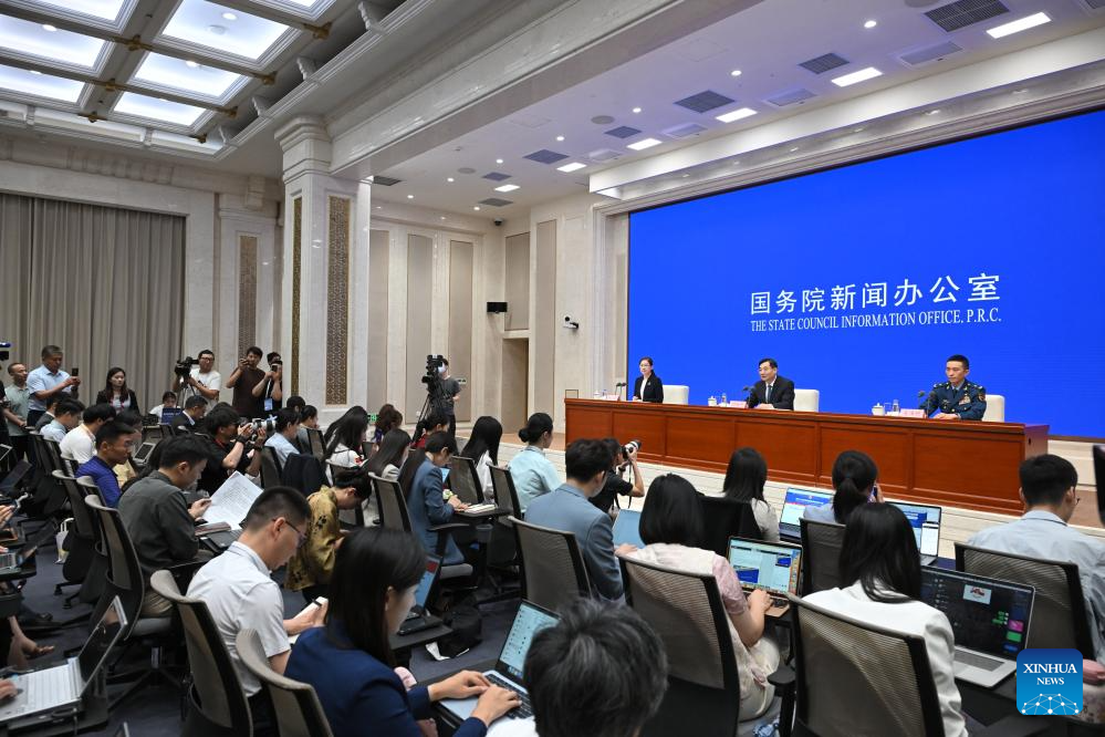 China's State Council Information Office holds a press conference on plans for marking the 80th anniversary of the victory in the Chinese People's War of Resistance Against Japanese Aggression and the World Anti-Fascist War, in Beijing, capital of China, June 24, 2025. Hu Heping, executive vice minister of the Publicity Department of the Communist Party of China Central Committee, and Major General Wu Zeke, deputy director of the Leading Group Office of Military Parade and deputy director general of the Operation Bureau of the Joint Staff Department of the Central Military Commission, briefed the media on the arrangement of commemorative activities and took questions. (Xinhua/Jin Liwang)
