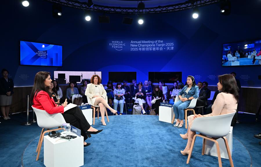 Guests attend the parallel session "Women in AI" during the 2025 Summer Davos Forum at the National Convention and Exhibition Center (Tianjin) in north China's Tianjin Municipality, June 24, 2025. (Xinhua/Sun Fanyue)