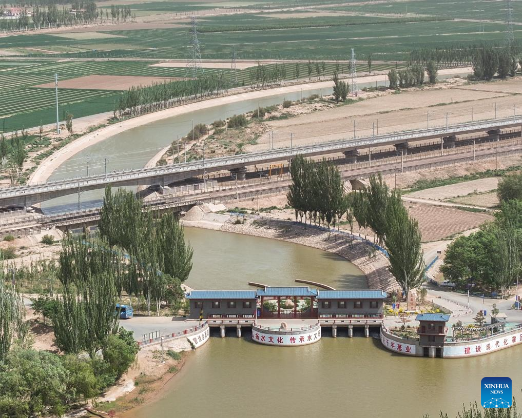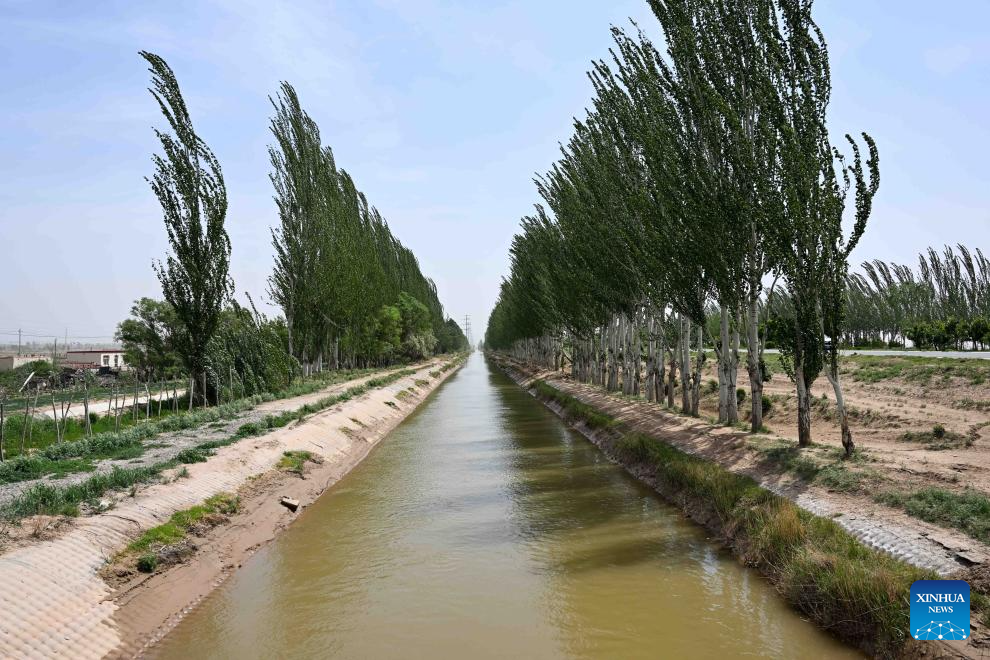 This photo taken on May 28, 2025 shows a canal in Linhe District of Bayannur, north China's Inner Mongolia Autonomous Region. (Xinhua/Li Zhipeng)