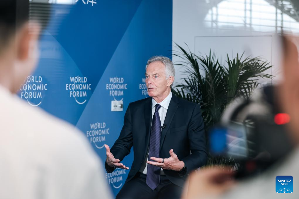 Former British Prime Minister Tony Blair is interviewed during the 2025 Summer Davos Forum in north China's Tianjin Municipality, June 24, 2025. (Xinhua)