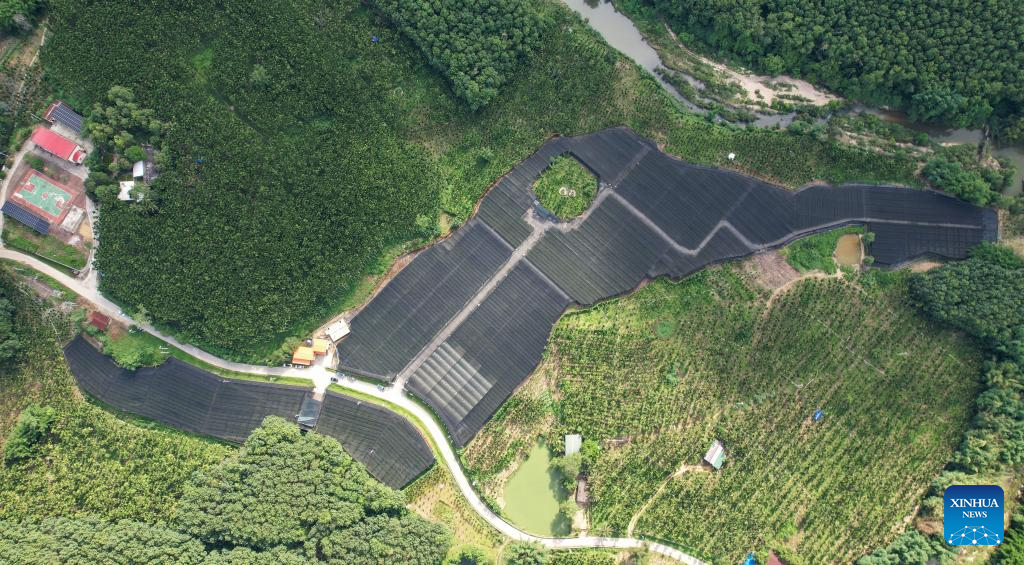 An aerial drone photo taken on June 25, 2025 shows an orchid planting base in Da'an Township, Baisha Li Autonomous County, south China's Hainan Province. The orchid industry has become an important booster for rural revitalization of Da'an Township. (Xinhua/Yang Guanyu)