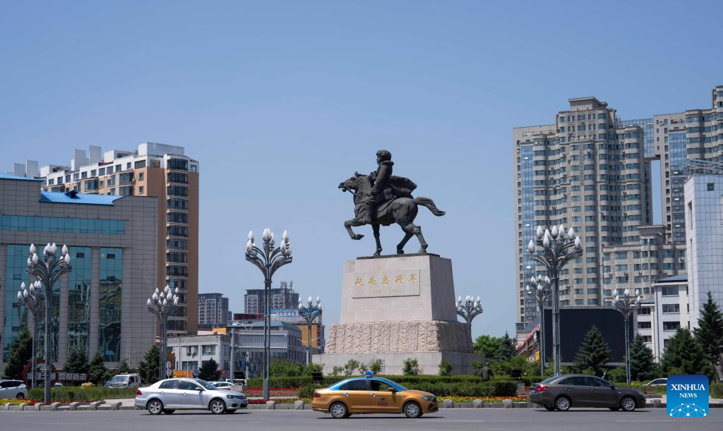 This photo taken on June 23, 2025 shows a statue of Zhao Shangzhi, a leader in the war of resistance against Japanese aggression, in the city of Shangzhi, northeast China's Heilongjiang Province. (Xinhua/Cai Yang)