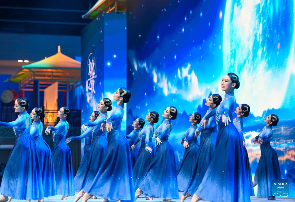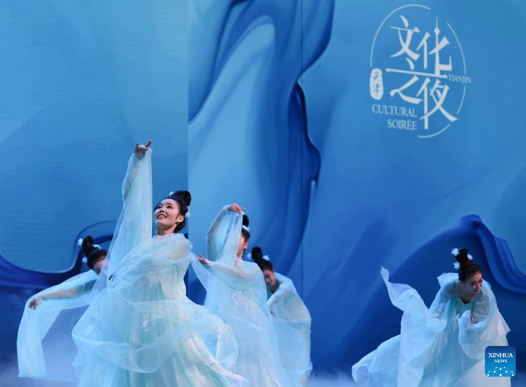 Artists perform during the Cultural Soiree of the 16th Annual Meeting of the New Champions, also known as the Summer Davos, in north China's Tianjin Municipality, June 25, 2025. Attendees learned about traditional Chinese culture, tasted characteristic food of Tianjin and enjoyed performances at the event. (Xinhua/Sun Fanyue)
