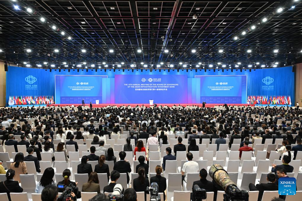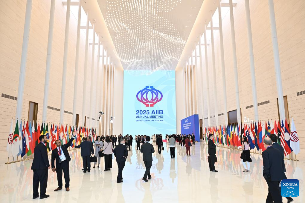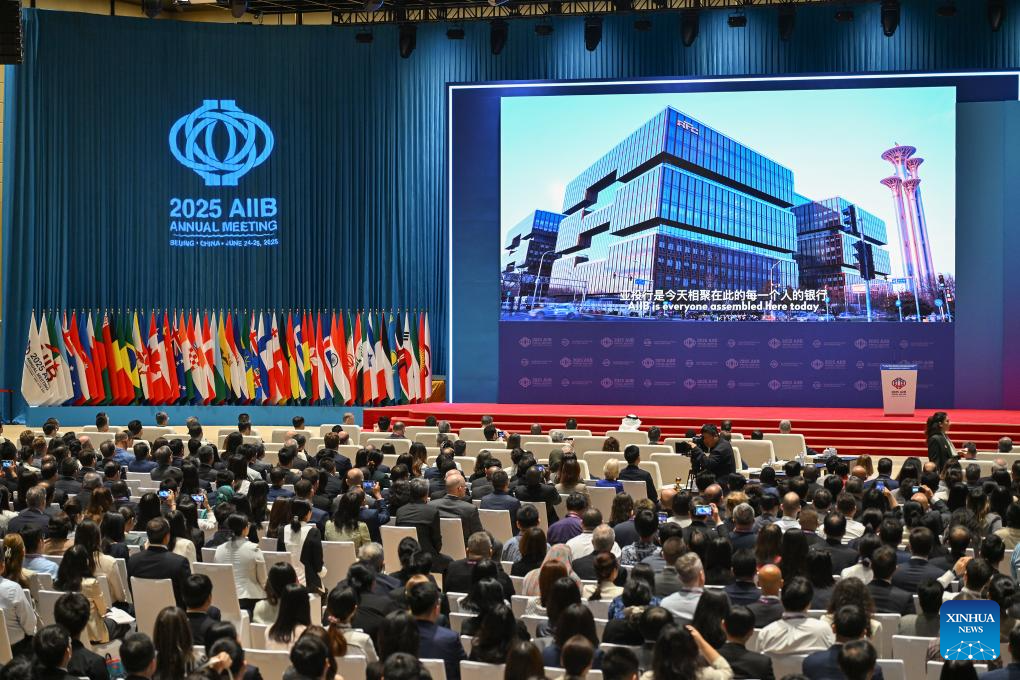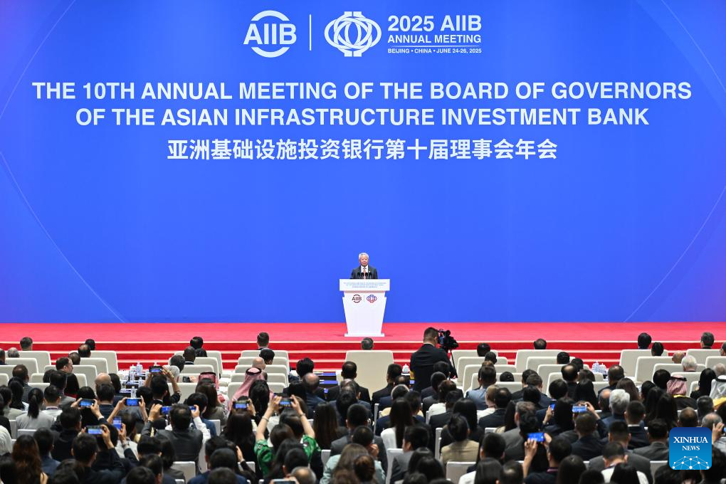 This photo taken on June 26, 2025 shows the 10th Annual Meeting of the Asian Infrastructure Investment Bank (AIIB) Board of Governors in Beijing, capital of China. Under the theme of "Connecting for Development, Collaborating for Prosperity" and participated by over 3,500 guests from about 100 countries and regions, the 10th Annual Meeting of the AIIB Board of Governors held its opening ceremony in Beijing on Thursday. (Xinhua/Li Xin)