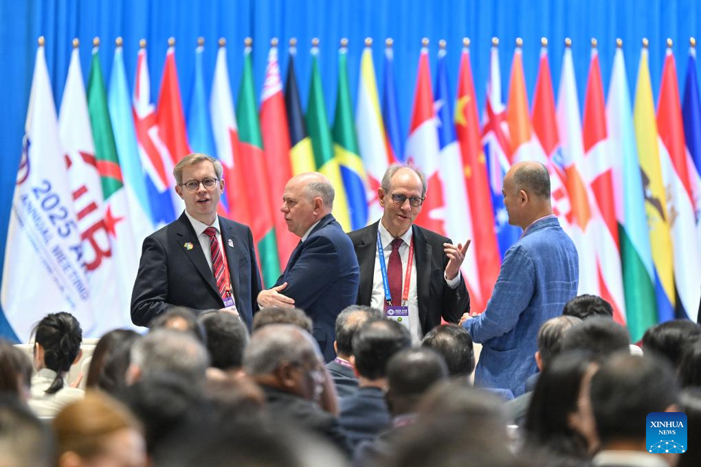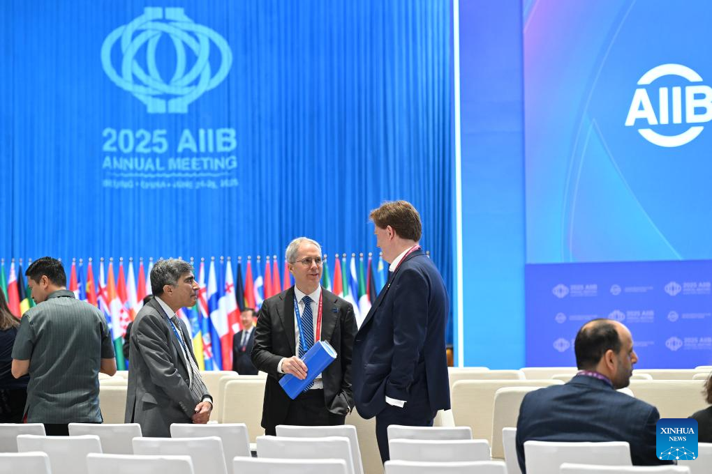 Guests communicate with each other before the opening ceremony of the 10th Annual Meeting of the Asian Infrastructure Investment Bank (AIIB) Board of Governors in Beijing, capital of China, June 26, 2025. Under the theme of "Connecting for Development, Collaborating for Prosperity" and participated by over 3,500 guests from about 100 countries and regions, the 10th Annual Meeting of the AIIB Board of Governors held its opening ceremony in Beijing on Thursday. (Xinhua/Li Xin)