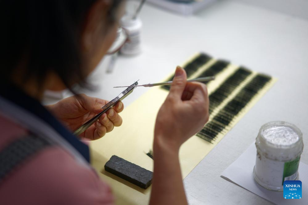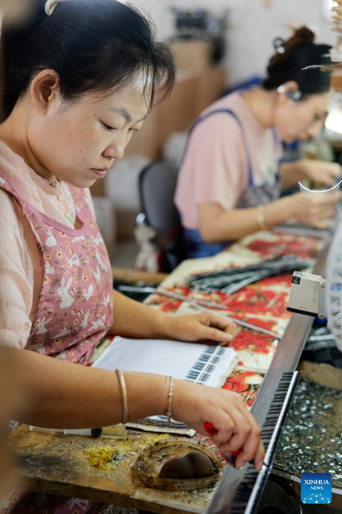A worker packs eyelashes at a false eyelash production base in Pingdu City, Qingdao of east China's Shandong Province, June 25, 2025. Development of the false eyelash industry in Pingdu began in the 1970s. Nowadays, over 5,000 business entities and about 60,000 employees are involved in the local pillar industry. Every year, about 120 million pairs of false eyelashes produced in Pingdu are sold overseas, bringing an annual output value of about 10 billion yuan (about 1.4 billion U.S. dollars).