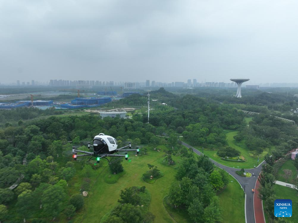 In recent years, Hefei has been vigorously developing low-altitude economy and continuously enrich related consumption scenarios. It has launched over 100 low-altitude service routes including sightseeing, medical supplies delivery, takeout delivery, rail track patrol, power line patrol, and fire-safety patrol. (Xinhua/Liu Junxi)