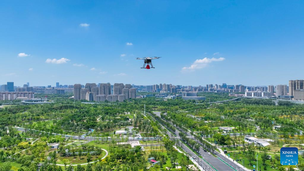 In recent years, Hefei has been vigorously developing low-altitude economy and continuously enrich related consumption scenarios. It has launched over 100 low-altitude service routes including sightseeing, medical supplies delivery, takeout delivery, rail track patrol, power line patrol, and fire-safety patrol. (Xinhua)