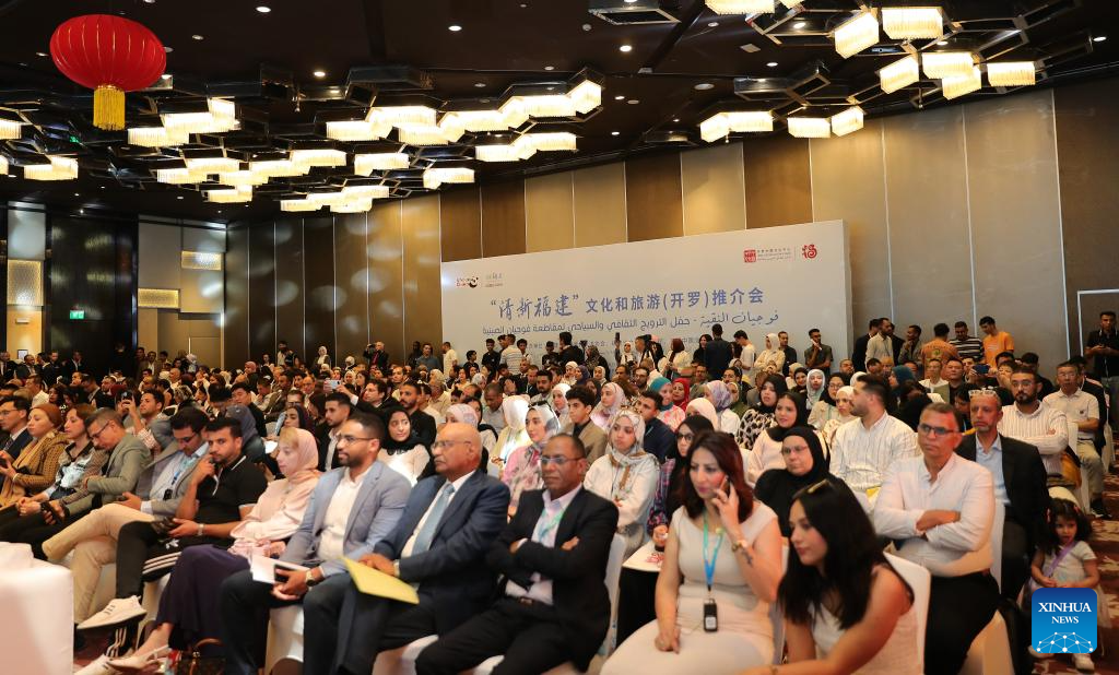 Guests attend a cultural and tourism promotion event for southeast China's Fujian Province, in Cairo, Egypt, June 24, 2025. (Xinhua/Wang Dongzhen)