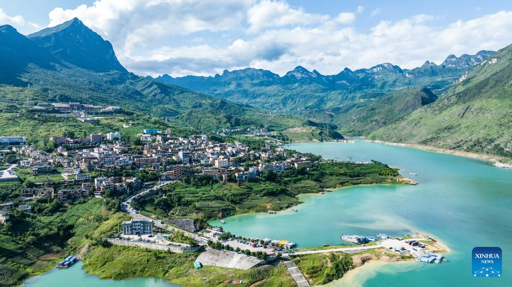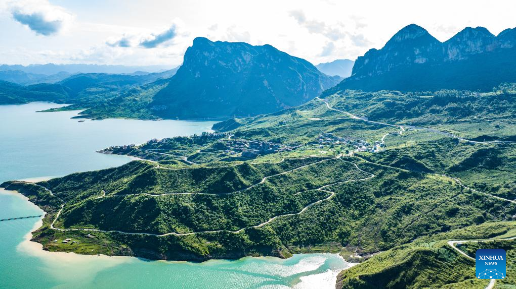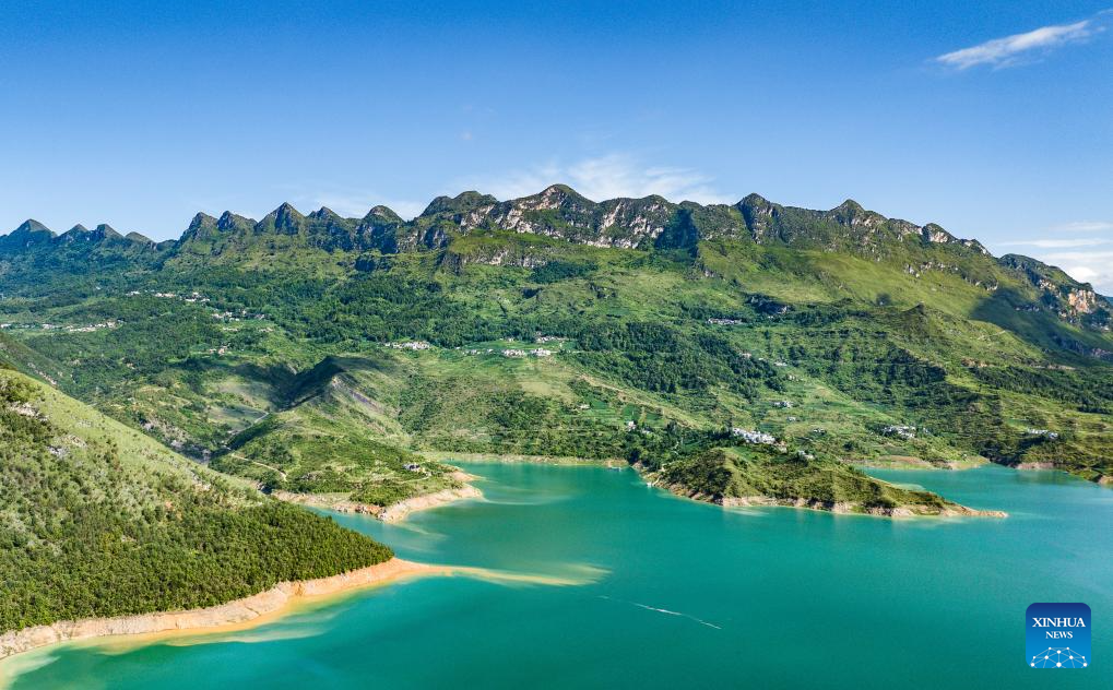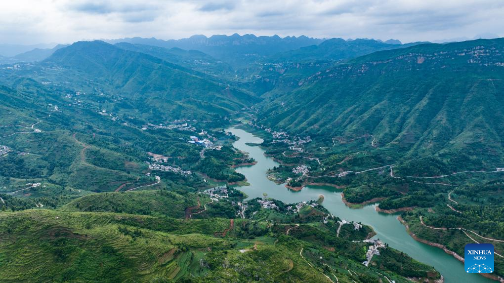 This aerial drone photo taken on June 29, 2025 shows a view of the Zangke river scenic area in Liupanshui, southwest China's Guizhou Province. (Xinhua/Tao Liang)