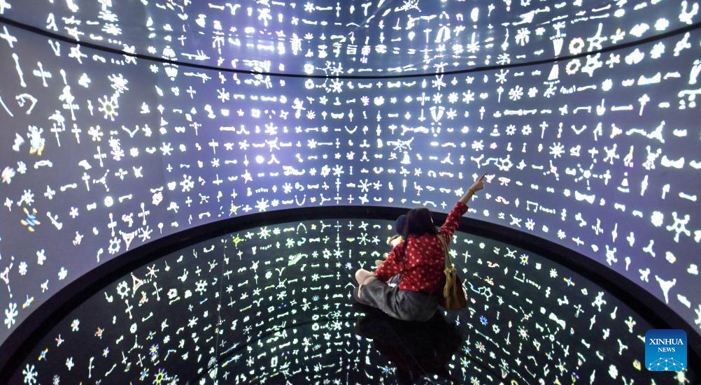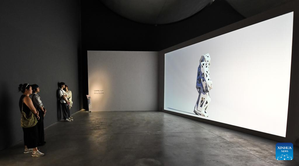 People visit the digital art exhibition "Future You: Code and Soul" at the 798 art zone in Beijing, capital of China, June 29, 2025. The exhibition explores the artistic fusion of digital code and human emotion in today's rapidly evolving age of artificial intelligence. (Xinhua/Li Xin)