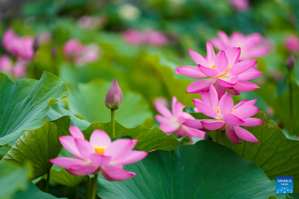 This photo taken on June 28, 2025 shows lotus flowers at a lotus pond of a scenic spot in Zunhua City, north China's Hebei Province. (Photo by Liu Mancang/Xinhua)