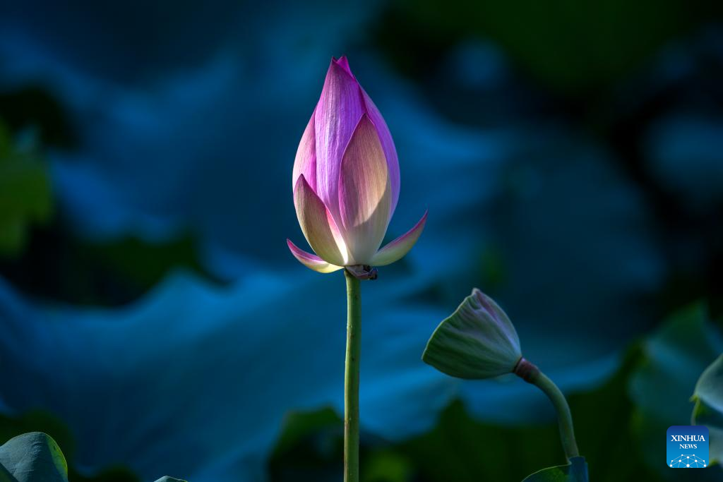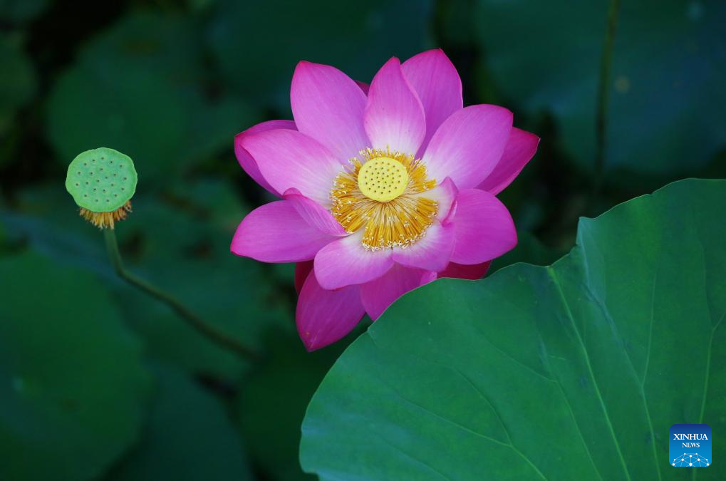 This photo taken on June 22, 2025 shows a lotus flower at a park in Wuzhou City, south China's Guangxi Zhuang Autonomous Region. (Photo by He Huawen/Xinhua)