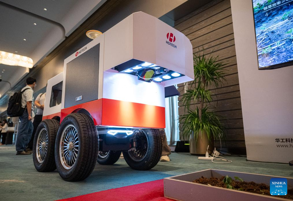 The robot, Hg LaserWeeder, was showcased on Saturday at an event hosted by Huagong Technology Industry Co., Ltd., one of its developers, in Wuhan, capital of central China's Hubei Province.
