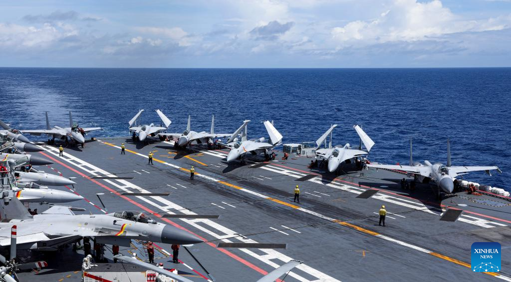 This photo shows fighter jets preparing to take off from an aircraft carrier. China's naval formations of two aircraft carriers, Liaoning and Shandong, have completed their far-sea combat-oriented training and safely returned to their home ports, according to the Chinese navy on Monday. (Photo by Hu Xiushuai/Xinhua)