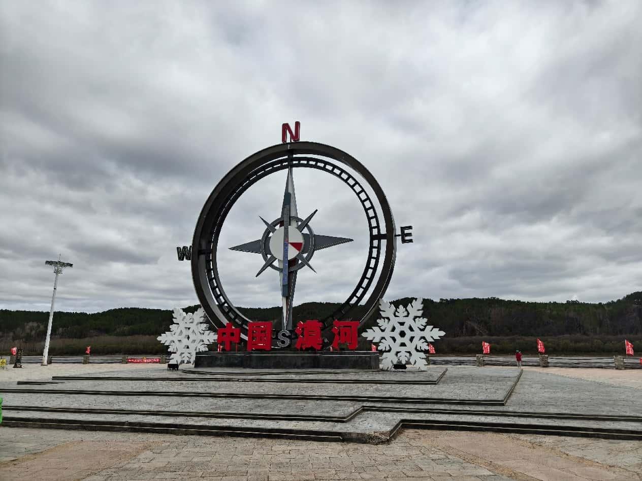 Photo shows a compass statue, a landmark of Beiji village, Mohe, northeast China's Heilongjiang province. (People's Daily/Zhou Zhou)