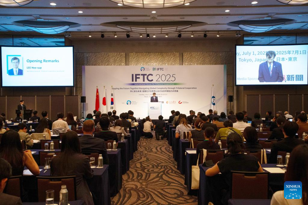 TOKYO, July 1 (Xinhua) -- The 2025 Trilateral Cooperation Forum was held here on Tuesday, bringing together over 200 in-person participants and hundreds of online attendees to discuss ways to strengthen cooperation among China, Japan and the Republic of Korea (ROK).