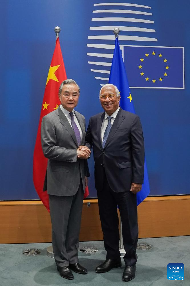 BRUSSELS, July 2 (Xinhua) -- Chinese Foreign Minister Wang Yi and European Council President Antonio Costa met here on Wednesday, pledging to uphold multilateralism and strengthen cooperation.