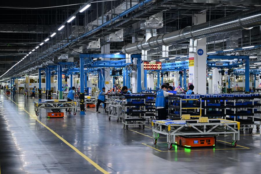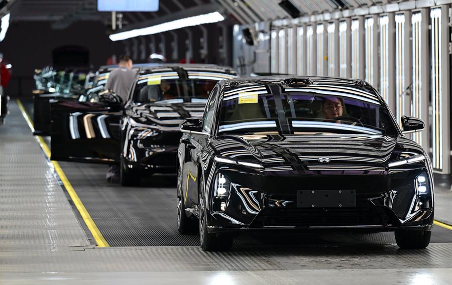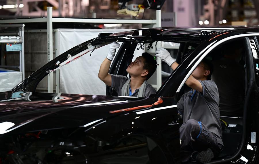 This photo shows a production line of the NIO Second Advanced Manufacturing Base in Hefei, east China's Anhui Province, July 1, 2025. (Xinhua/Zhou Mu)