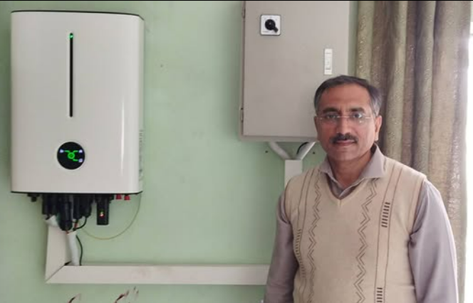 Anwar, a Pakistani man, poses for a photo with newly installed photovoltaic equipment at his home. (Photo courtesy of the interviewee)