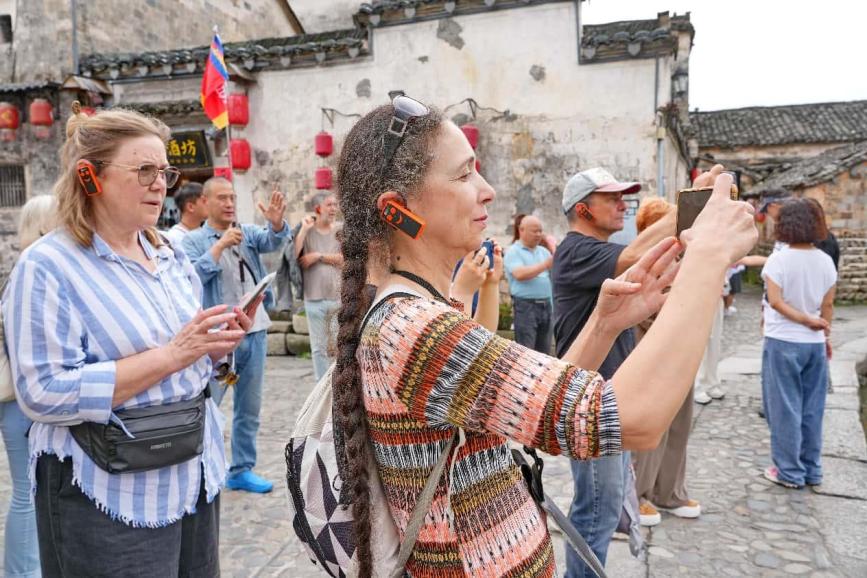 Foreign tourists explore a rural scenic area in Yixian county, Huangshan, east China's Anhui province, May 21, 2025. (Photo by Xu Jiadong/People's Daily Online)