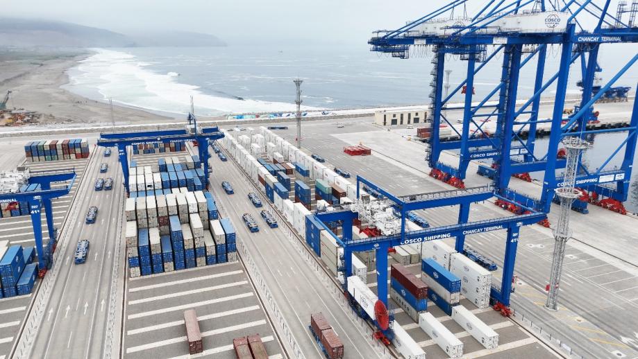 Photo shows an aerial view of Peru's Chancay Port, South America's first smart port featuring automated operations. (Photo from the WeChat official account of Utopilot)