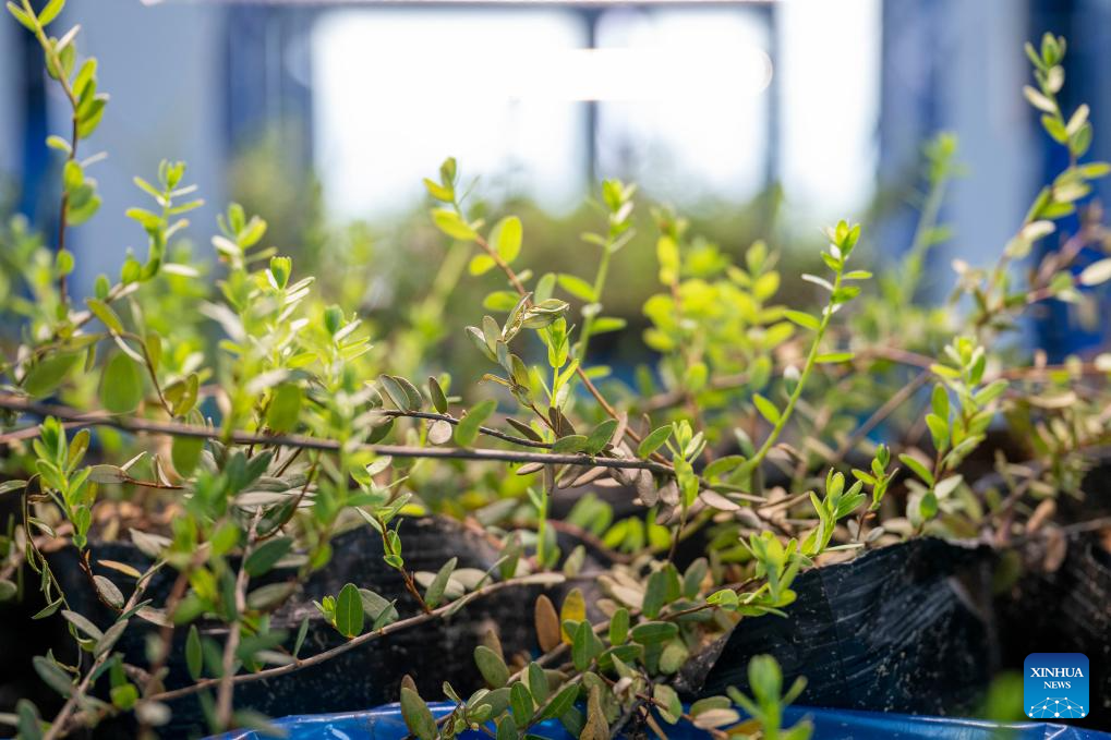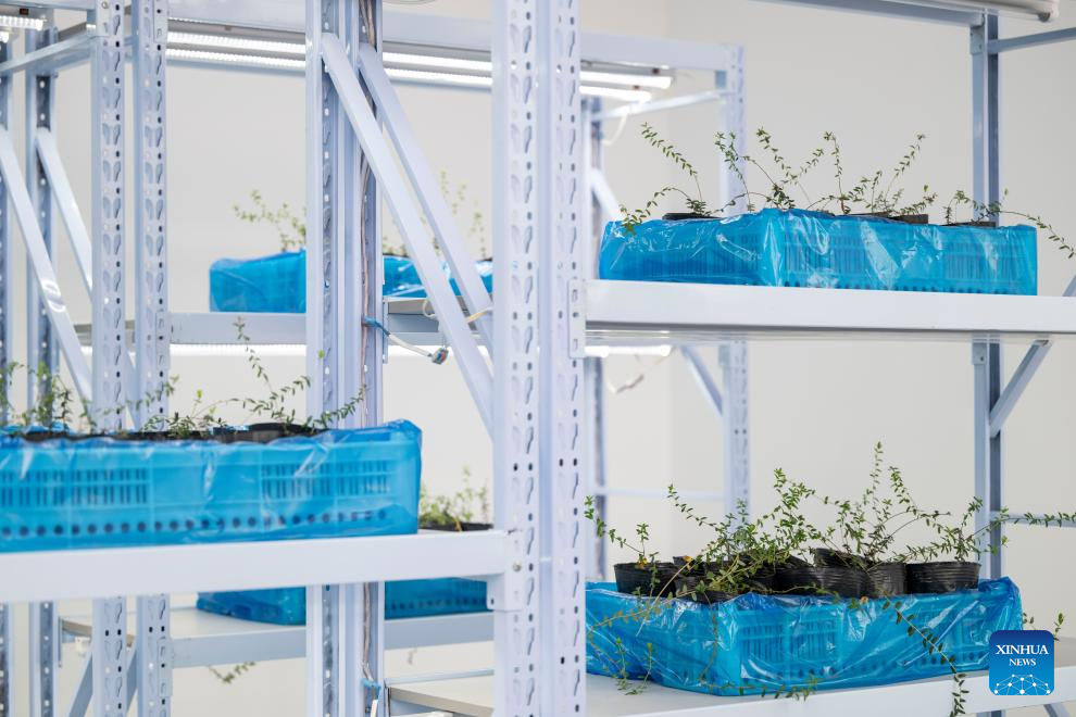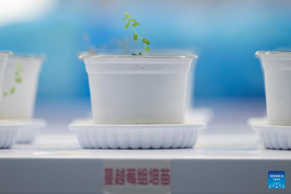 This photo taken on July 2, 2025 shows cranberry tissue culture seedlings at the cranberry research and development center in Fuyuan City, northeast China's Heilongjiang Province. Located in the easternmost part of China, Fuyuan City is dubbed "the east pole of Huaxia (historical concept representing China)". In recent years, the city has continuously enhanced agricultural standardization and industrialization, vigorously developing modern agriculture that incorporates digital intelligence and ecological sustainability, a move expected to bring prosperity to the border area and improve locals' incomes. (Xinhua/Zhang Tao)