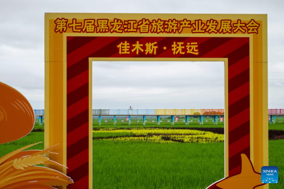 People tour a rice planting cooperative in Fuyuan City, northeast China's Heilongjiang Province, July 2, 2025. Located in the easternmost part of China, Fuyuan City is dubbed "the east pole of Huaxia (historical concept representing China)". In recent years, the city has continuously enhanced agricultural standardization and industrialization, vigorously developing modern agriculture that incorporates digital intelligence and ecological sustainability, a move expected to bring prosperity to the border area and improve locals' incomes. (Xinhua/Zhang Tao)