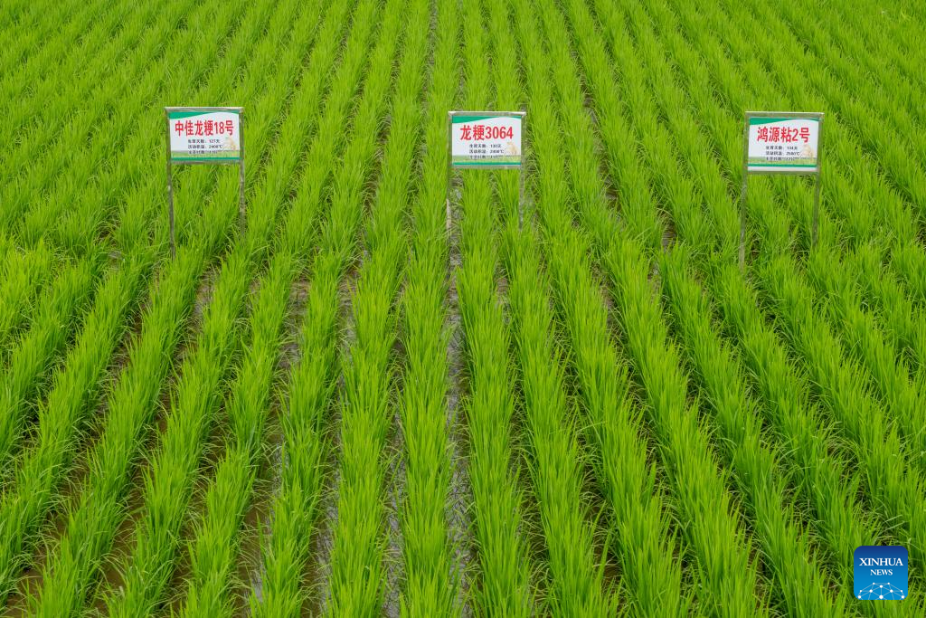 An aerial drone photo taken on July 2, 2025 shows people touring a rice planting cooperative in Fuyuan City, northeast China's Heilongjiang Province. Located in the easternmost part of China, Fuyuan City is dubbed "the east pole of Huaxia (historical concept representing China)". In recent years, the city has continuously enhanced agricultural standardization and industrialization, vigorously developing modern agriculture that incorporates digital intelligence and ecological sustainability, a move expected to bring prosperity to the border area and improve locals' incomes. (Xinhua/Zhang Tao)