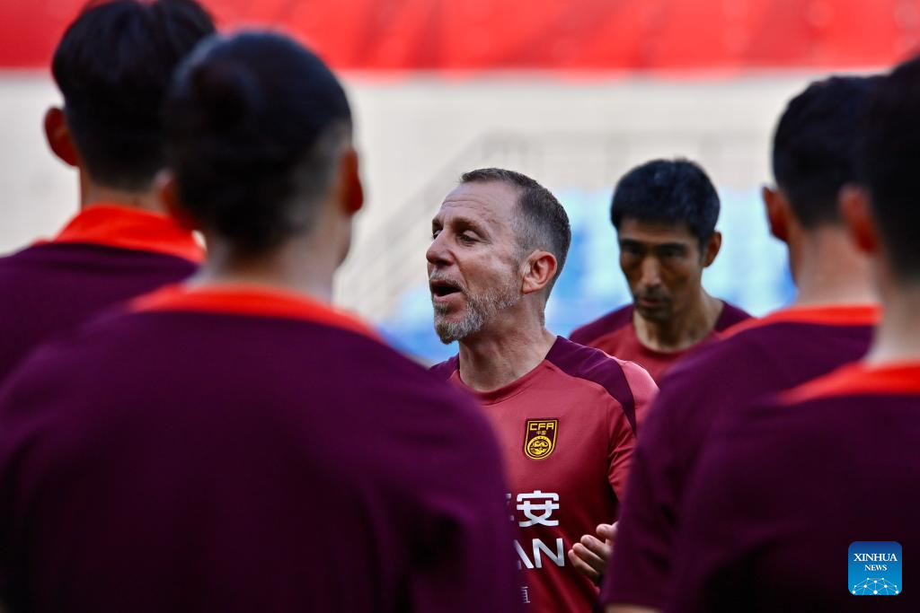 Dejan Djurdjevic (C), caretaker manager of Chinese national men's football team attends a training session in Dalian, northeast China's Liaoning Province, July 2, 2025. (Xinhua/Wu Qinghao)