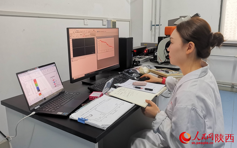 Zhai Congwen, who is currently pursuing her doctoral degree at Northwest University in Xi'an, northwest China's Shaanxi Province, analyzes cultural relic samples in a lab. (People's Daily Online/Wang Li)