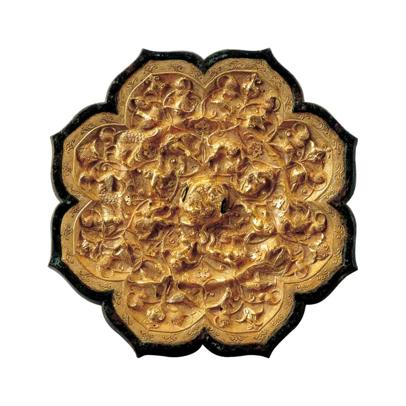 Photo shows a Tang Dynasty (618-907) gold-backed bronze mirror featuring auspicious animals housed in the Xi'an Museum in Xi'an, northwest China's Shaanxi Province. (Photo courtesy of the Xi'an Museum)