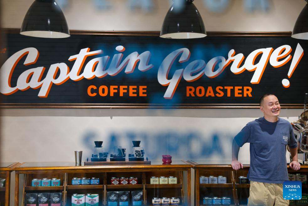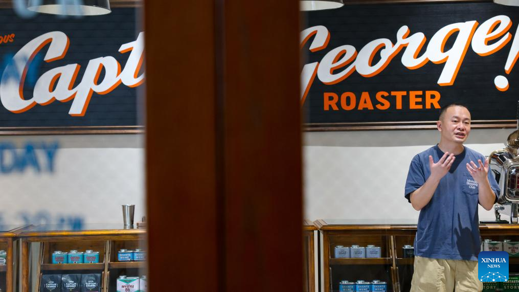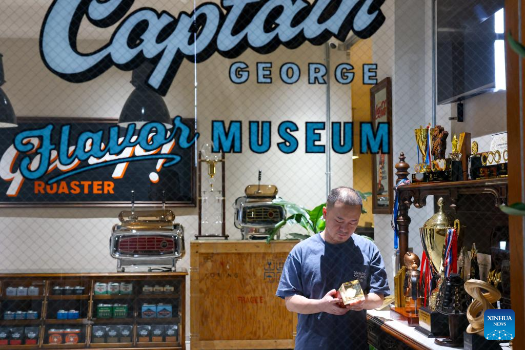 Peng Jinyang, the champion of the 2025 World Brewers Cup (WBC), is pictured at his company in Guiyang, southwest China's Guizhou Province, May 23, 2025. (Xinhua/Ou Dongqu)