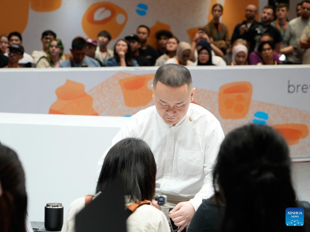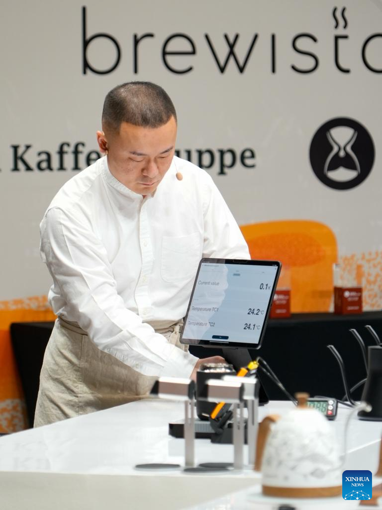 Chinese barista Peng Jinyang (C) competes in the 2025 World Brewers Cup (WBC) in Jakarta, Indonesia, on May 15, 2025. (Xinhua)