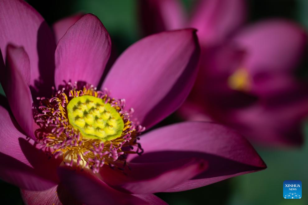 This photo taken on July 6, 2025 shows lotus flowers at the Taipa Houses Museum in Macao, south China. The 25th Macao Lotus Flower Festival is held here from July 6 to 20. (Xinhua/Cheong Kam Ka)