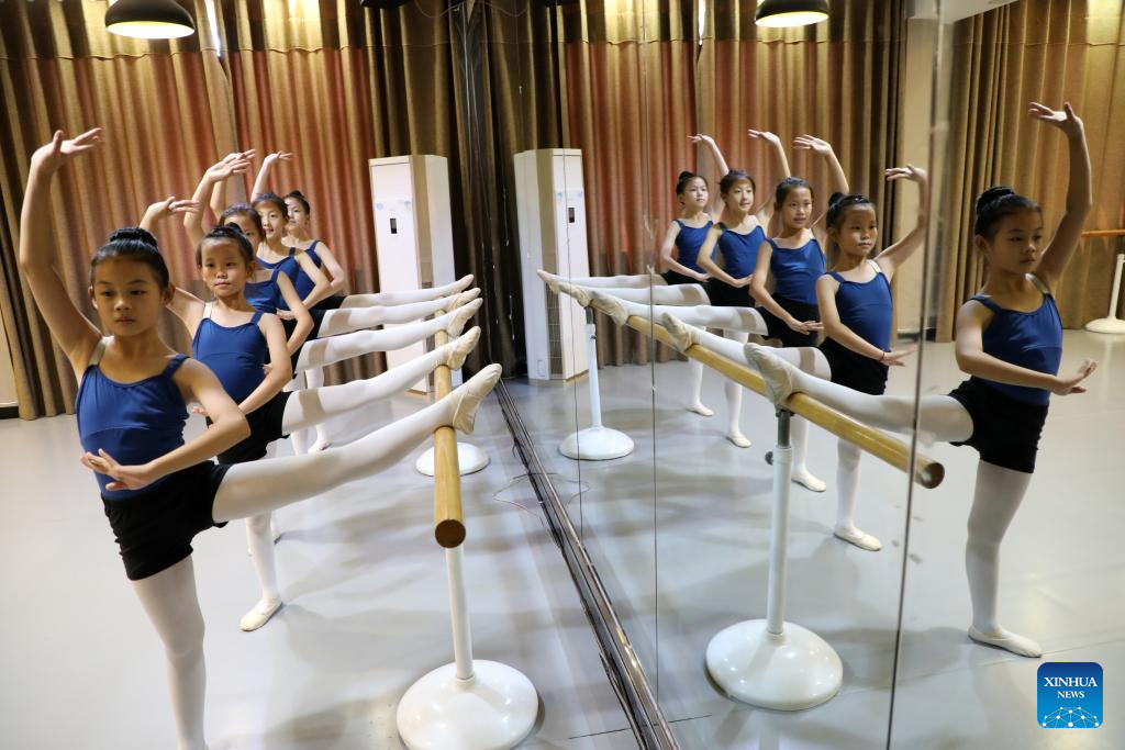 Pupils learn to dance at a dance school in Zaozhuang City, east China's Shandong Province, July 5, 2025. (Photo by Chen Bin/Xinhua)