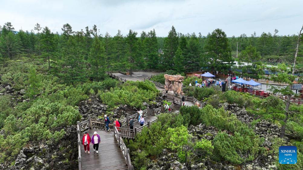 Tourists visit Arxan of Hinggan League, north China's Inner Mongolia Autonomous Region, July 4, 2025. Arxan, located at the southwestern foot of the Dahinggan Mountains and at the intersection of four major grasslands, is an increasingly popular tourist destination. (Xinhua/Bei He)