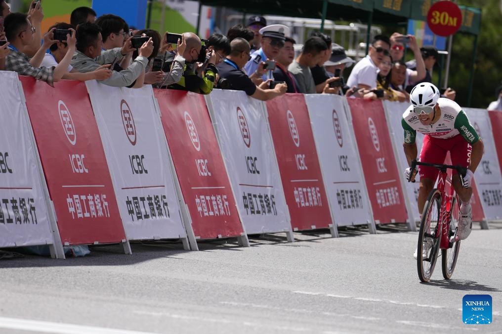Manuel Penalver Aniorte of Team Polti Visitmalta sprints to the finish line during Stage 1 of the Tour of Magnificent Qinghai international road cycling race in Xining, northwest China's Qinghai Province, July 6, 2025. (Xinhua/Qi Zhiyue)