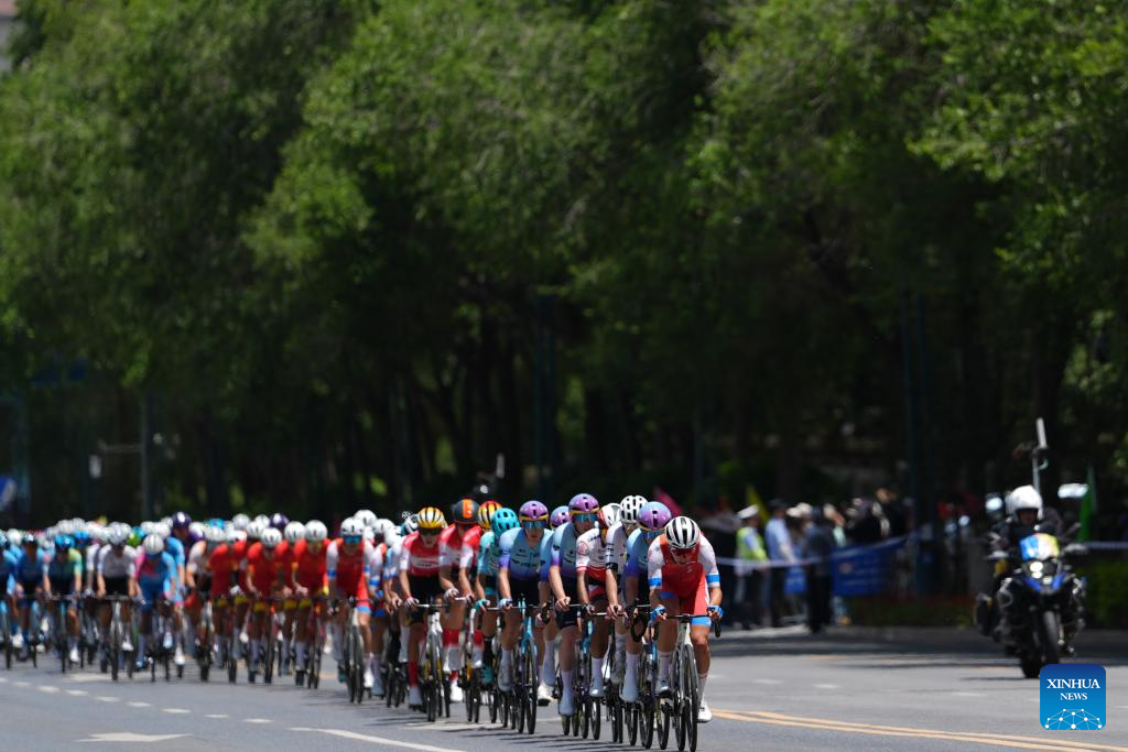 Cyclists compete during Stage 1 of the Tour of Magnificent Qinghai international road cycling race in Xining, northwest China's Qinghai Province, July 6, 2025. (Xinhua/Zhang Long)
