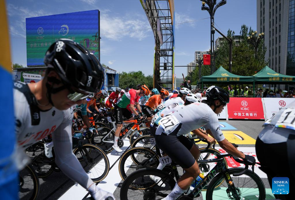 Cyclists start during Stage 1 of the Tour of Magnificent Qinghai international road cycling race in Xining, northwest China's Qinghai Province, July 6, 2025. (Xinhua/Qi Zhiyue)