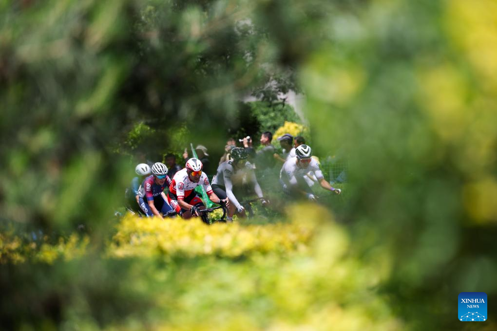 Cyclists compete during Stage 1 of the Tour of Magnificent Qinghai international road cycling race in Xining, northwest China's Qinghai Province, July 6, 2025. (Xinhua/Qi Zhiyue)