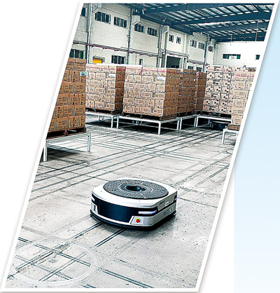 Photo shows an AGV (automated guided vehicle) robot at an intelligent manufacturing workshop of Hsu Fu Chi, a leading snack and confectionery producer, in Dongguan, south China's Guangdong Province. (Photo courtesy of the interviewee)