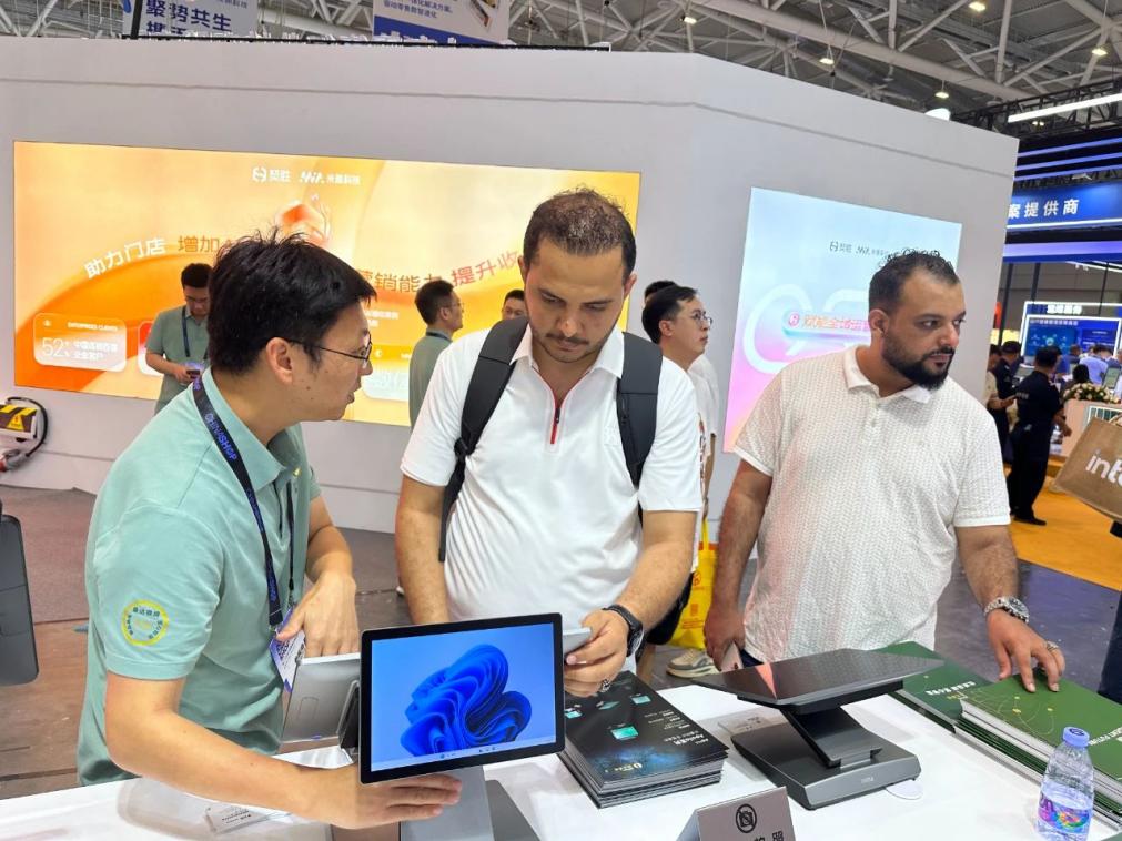 Foreign visitors to the 2025 ChinaShop learn about smart terminals. (Photo from the official account of SED Initta on WeChat)