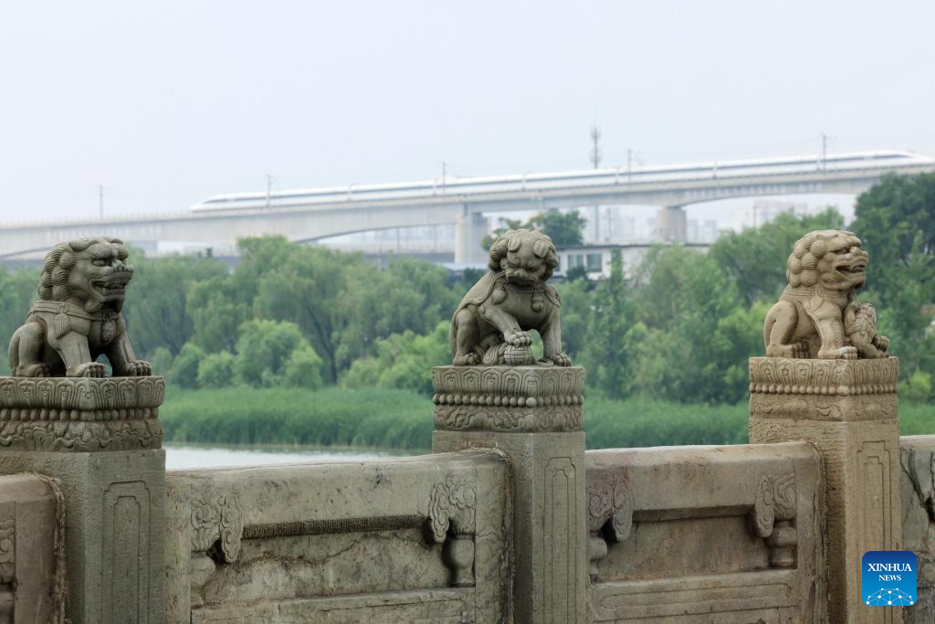 Stone lions are pictured at Lugou Bridge in Beijing, capital of China, July 4, 2025. The Museum of the War of Chinese People's Resistance Against Japanese Aggression will reopen on July 8, offering admission fee-free and reservation-free visits to the public.
