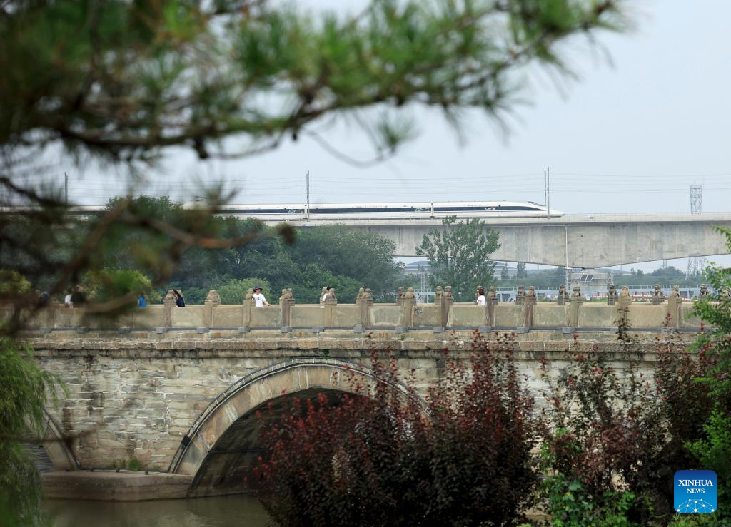 People visit Lugou Bridge in Beijing, capital of China, July 4, 2025. The Museum of the War of Chinese People's Resistance Against Japanese Aggression will reopen on July 8, offering admission fee-free and reservation-free visits to the public.