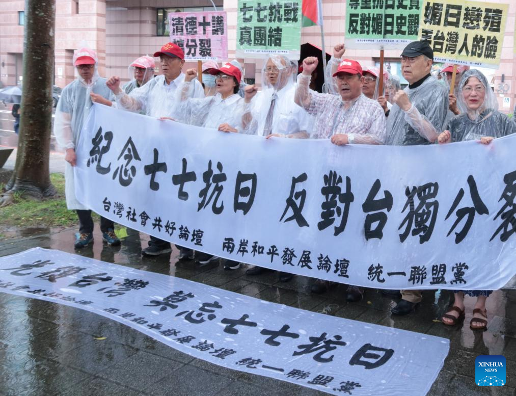 The rally, held outside the Democratic Progressive Party (DPP) headquarters, called for the respect for historical facts and opposition to pro-Japanese historical narratives, urging the DPP authorities to acknowledge the shared history of cross-Strait resistance and recognize the contributions of Taiwan people during the war.