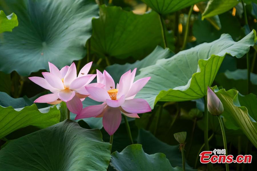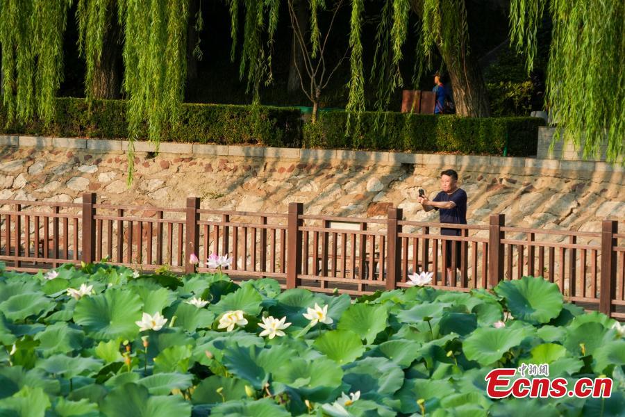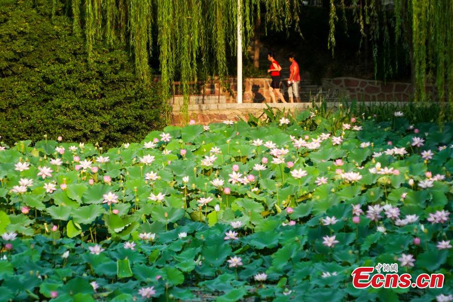 Lotus flowers bloom at Zijingshan Park of Zhengzhou City in central China's Henan Province on July 7, 2025. (Photo/China News Service)